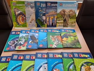 Für Zweit- und Drittklässler eignen sich insbesondere die Bücher der Reihe „Erstes Lesen“. Wir haben die Titel „ Regenwald“, „Haie“, „Raubkatzen“, „Greifvögel“, sowie „Ritter und Burgen“ erworben. Für die Leseanfänger sind die Bücher „Erstes Lesen Easy!“ gedacht. Die Bände 1 bis 8 heißen „Entdecke die Bäume“, „Tiere im Meer“, „Wie lebt die Honigbiene?“, „Entdecke den Weltraum“, „Wie leben die Delfine?“, „Komm mit zu den Pferden“, „Wie leben unsere Vögel?“, sowie „Tiere in Schnee und Eis“. Für die Viertklässler wurden die klassischen Was-ist-Was-Bücher mit den Themen „Polargebiete“, „Schmetterlinge“, „Geld“, „Elefanten“, „Bären“, „Deutschland“, „Mode“, „Tanz“, „Zukunft“ und „Archäologie“ neu angeschafft.