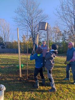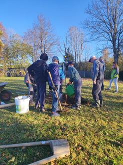 Am Mittwoch, den 08. November, begaben sich fünf Jugendliche aus dem Jugendtreff gemeinsam mit der Jugendpflegerin Saskia Ohlson zum Spielplatz am Simmerberg, um gemeinsam mit dem Bund Naturschutz Bäume zu pflanzen. Vom Einsetzen des Baumes, über das Gießen bis hin zur Befestigung der Stützpfeiler waren die Jugendlichen tatkräftig bei der Sache. Alle Beteiligten hatten so viel Spaß, dass schon über eine neue Pflanzaktion im Frühjahr gesprochen wurde, auf die wir uns jetzt schon sehr freuen.