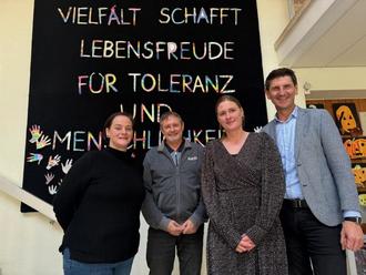 Von links nach rechts: Dorothee Settele vom Landratsamt Oberallgäu, Ralf Tamler, Rektor der Grundschule Sulzberg, Sandra Schädler neue Schulsozialarbeiterin der Grundschule Sulzberg, Gerhard Frey 1. Bürgermeister