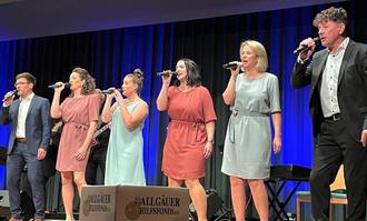 Beste Stimmung herrscht beim Benefizkonzert aus Anlass des 25-jährigen Bestens des Allgäuer Hilfsfonds e.V. im „Hirsch“ in Sulzberg. Die sieben bekannten Allgäuer Sängerinnen und Sänger um Gertrud Hiemer-Haslach boten mit einer vierköpfigen Band Highlights aus Film, Musical und Pop.