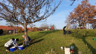 Gemeinsam mit dem Bund Naturschutz pflanzten wir Anfang November Blumenzwiebeln am Spielplatz am Simmerberg. In toller Teamarbeit wurden Löcher ausgehoben, Zwiebeln gesetzt, Erde aufgeschichtet und mit Sägespänen die bepflanzten Stellen markiert. Und so wurden 900 Krokusse, 300 Narzissen und 300 Tulpen gepflanzt. Im Frühjahr, wenn die Blumen das erste Mal blühen, werden wir auf jeden Fall ein Picknick auf dem Simmerberg machen und die Blumenpracht genießen. Lieben Dank für die Organisation und Durchführung dieser tollen Aktion an den Bund Naturschutz.