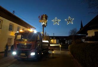 Auch dieses Jahr hat die Freiwillige Feuerwehr Sulzberg zusammen mit dem Bauhof und mit organisatorischer Unterstützung vom Verkehrsverein Sulzberg die Weihnachtssterne in Sulzberg, Moosbach und Ottacker aufgehängt. Peter Jörg hat hierfür wieder einen Kranwagen und einen Fahrer zur Verfügung gestellt.