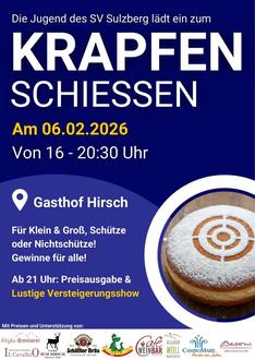 die Jugendabteilung lädt euch auch heuer wieder ein, bei unserem großen Krapfenschießen teilzunehmen!