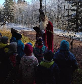 Wie jeder weiß, stapft der Nikolaus auf dem Hin- und Rückweg zu den Kindern immer durch den Wald. Entsprechend aufgeregt waren die Kinder des Waldkindergartens, ob sie ihn auch dieses Jahr wieder treffen würden.