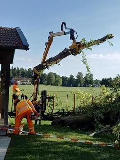 Im Garten der Kindergartenkinder stürzte ein großer Baum um. Zum Glück fiel er so, dass nichts beschädigt wurde.