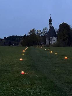 Am 12. November zogen die Krippenkinder in Begleitung ihrer Familien fröhlich über die Wiese zum malerischen Ettendorferkircherl.