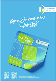 Zusätzlich bieten wir eine kostenlose Abfall-App für Android- und Apple-Geräte an, die über einen QR-Code auf dem Abfuhrkalender oder der Website heruntergeladen werden kann. Sie erinnert z.B. über die Funktion des „Abfallweckers“ an die Abfuhrtermine und enthält zudem noch viele weitere Informationen rund um das Thema Abfall.