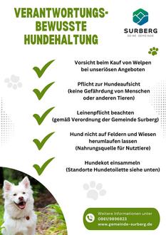 Liebe Bürgerinnen und Bürger,die Gemeinde Surberg führt aktuell eine Hundebestandsaufnahme durch. Diese Maßnahme ist erforderlich geworden, da vermehrt Hundehalter aufgefallen sind, die ihre Hunde nicht ordnungsgemäß angemeldet haben. Bitte beachten Sie diese Maßnahme vorrangig im Sinne der Steuergerechtigkeit und im Interesse der vielen Hundehalter/-innen, die ihre Hunde korrekt angemeldet haben. Nach der Hundesteuersatzung der Gemeinde Surberg sind Hunde unverzüglich nach Aufnahme des Tieres in den Haushalt anzumelden. Sollten Sie es als Hundehalter bisher versäumt haben, Ihren bzw. Ihre Hunde anzumelden, so sind Sie verpflichtet, dies unverzüglich nachzuholen. Die Anmeldung des/der Hunde/s kann entweder zu den bekannten Öffnungszeiten im Rathaus oder online über das Anmeldeformular unter www.gemeinde-surberg.de erfolgen. Geht die Anmeldung bis zum 31.03.2024 bei der Gemeinde Surberg ein, ergeben sich für Sie keine nachteiligen Folgen. Wir weisen jedoch ausdrücklich darauf hin, dass nach Ablauf der obigen Frist, bei nicht ordnungsgemäßer bzw. nicht rechtzeitiger Anmeldung von Hunden ein Bußgeldverfahren eingeleitet werden kann. Weitere Informationen zur Hundesteueranmeldung erhalten Sie in der Steuerstelle unter der Rufnummer 0861/9896823 sowie im Internet unter www.gemeinde-surberg.de. |