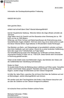 an Bahnanlagen, welche lebensgefährlich sein können.