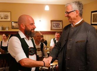 Bürgermeister Michael Wimmer (rechts) gratulierte Manfred Biermaier zur Wiederwahl zum ersten Vorsitzenden der Musikkapelle Surberg-Lauter.