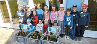 Nach dem Pflanzen kam ein wichtiger Aspekt des Projekts zum Tragen: Die Kinder übernahmen in Gruppen die Patenschaft für "ihre" Kisten. Fortan liegt die Verantwortung für das Gedeihen von Salat, Radieschen, Kräutern oder Ringelblumen in ihren Händen. Regelmäßiges Gießen und das Beobachten des Wachstums werden nun Teil des Schulalltags sein.