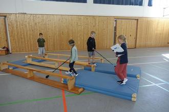 Damit sich die Kinder besser in Personen mit Beeinträchtigungen hineinversetzen konnten, gab es in der Turnhalle verschiedene Stationen. Sie erlebten beispielsweise, wie es ist mit einem Rollstuhl in einen „Aufzug“ zu fahren und auch ohne anzustoßen wieder herauszukommen. Oder wie es sich anfühlt ohne Augenlicht, nur mit einem Blindenstock als Hilfe, Barrieren erkennen und überwinden zu müssen bzw. wie gut mein Tastsinn sein muss, um Dinge zu erfühlen. Oder auch wie schwierig es sein kann, die passende Gestik zu verwenden, damit mein gehörloser Gesprächspartner versteht, was ich meine.
