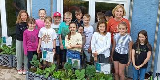 Mit viel Eifer wurde am 30. April in der Schule gesät und gepflanzt. 5 Wochen lang betreuten die Drittklässler ihre Pflanzkisten. Das fleißige Gießen hat sich gelohnt. In den Pflanzkisten wuchsen Salatköpfe, Schnittlauch, Kohlrabi und Borretsch. Die Schüler mussten aber auch feststellen, dass nicht immer alles gleich gut wächst. So ist aus den gesäten Radieschen witterungsbedingt leider nichts geworden.
