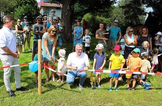 Surberg – Mit einem kleinen Festakt eröffnete bei Bilderbuchwetter Bürgermeister Michael Wimmer im Beisein vieler Familien mit ihren Kindern, Anwohnern und Vertretern der Kommunalpolitik den neu gebauten Spiel- und Rastplatz auf dem Dorfplatz im Surberger Ortsteil Lauter. Pastoralreferent Robert Hintereder übernahm die Segnung.