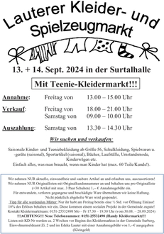 Kontakt Kleidermarktteam: 0151-25532498 Mo - Fr 17.30 - 19.30 Uhr (vom 30.08. - 28.09.2024)