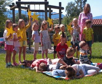 Heuer besuchten die Senioren wieder den Kindergarten und groß war die Freude auf beiden Seiten. Dieses Treffen wurde vor der Pandemie schon einige Jahre gepflegt und man besuchte sich gegenseitig. Die Kinder waren sehr aufgeregt, weil bei manchen Kindern, die Oma oder der Opa in den Kindergarten kommen und die Kinder aus der Schweinchen-Gruppe, die einstudierte Geschichte: „Weißt du eigentlich, wie lieb ich dich hab!“ im Garten aufführen durften. Mit großem Einfallsreichtum wurde uns gezeigt, wie groß die Liebe sein kann – bis zum Himmel und zurück. Im Anschluss daran feierte Diakon Tobias Raab mit uns eine kleine Andacht. Der Kindergarten hat dabei die musikalische Umrahmung übernommen. Und so, wie es halt bei den Großeltern der Brauch ist, haben die Kinder für ihre Mühen eine Gage in Form von Süßigkeiten und Kuchen erhalten. Anschließend wurde der Kindergarten besichtigt, wobei die Senioren viele Informationen über den täglichen Ablauf eines Kita-Alltages erhielten. Das nächste Zusammenkommen ist schon in Aussicht gestellt worden und die Vorfreude darauf ist unendlich.