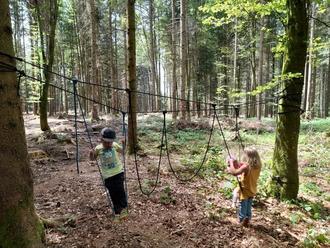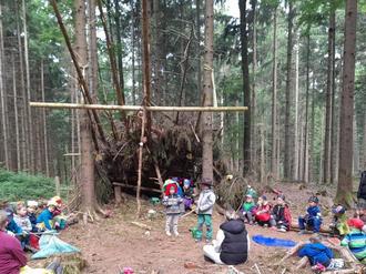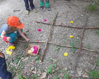 Nach diesen beiden sehr gelungenen Darbietungen ging es zurück zu den Waldhütten, wo es neben einem Abenteuer-Parcours noch Waldspiele, Bastelangebote, Kinderschminken und sogar eine Glücks-Suche gab. Für das leibliche Wohl durfte natürlich auch das Buffet nicht fehlen, das der Elternbeirat organisiert hatte und zu dem die Eltern des Waldkindergartens zahlreiche Beiträge leisteten.