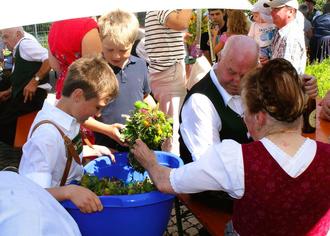 Während die beiden Lisbeth’s – Steinbacher und Pletschacher, ihres Zeichens Mesnerinnen in Surberg für den schönen Blumenschmuck und die Gestaltung des Freialtars am Pfarrheim verantwortlich zeichneten, dekorierten Vertreter der Veranstalter die Besuchertische im Vorfeld ebenso ansprechend mit Kräuterbüscherl aus. Rund 100 Gläubige feierten dann gemeinsam mit Pfarrvikar Christoph Zirkelbach und Diakon Tobias Raab die Heilige Messe zum Hochfest Mariä Himmelfahrt. In seiner Predigt hob Zirkelbach die große Bedeutung Mariens für den christlichen Glauben hervor und schloß den Gottesdienst mit der Segnung der unzähligen Kräuterbüscherl. Diese tags zuvor fleißig von den Ministranten gemeinsam mit einigen Müttern und Oma’s gebunden, fanden dann reißenden Absatz. Das Klarinettenquartett um Sepp Wimmer, Markus Zoff, Stefan Wolfgruber und Georg Wimmer gestalteten den Gottesdienst musikalisch mit der „Pöhamer Musikantenmesse“.