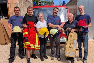 Riesengroße Freude und Dankbarkeit herrschte bei der ungarischen Dorffeuerwehr Taliandörögd. Die Ungarnhilfe Surberg und Traunstein brachte Einsatzkleidung und Spinde. Von links: Kommandant Mihaly Magvas, Stefan Burghartswieser, Vorortkoordinatorin Evelin Hedl, Feuerwehrpräsident Sandor Berki, Franz Reitschuh und Aron Zöldy.