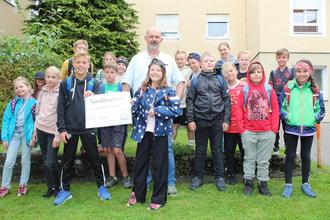 Mit einer ganz besonderen Mission im Gepäck beging die Klasse 4b der Grundschule Surberg mit ihrer Lehrerin Frau Baur ihren Wandertag. Das Ziel war das Kinderheim St. Josef in Traunstein, wo sie an Karl-Heinz Oberhuber, dem Leiter des Hauses St. Josef einen Spendenscheck und drei Taschen gefüllt mit Sachspenden überreichte.