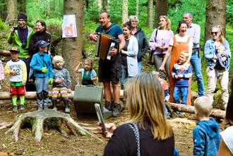 Für gesamt 50 Vorschulkinder ging die Kindergartenzeit zu Ende und das wurde nun kräftig gefeiert. Im Waldkindergarten stimmte der Waldmusikant „Michi“ mit seinem Akkordeon zu Beginn das „Biberlied“ an. Alle gekommenen Familienangehörigen, bleibenden „Waldameisen“, das Betreuerteam und die scheidenden Vorschulkinder mimten das „Waldorchester“ und sangen ausgelassen mit.