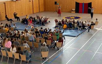 Am Dienstag, den 14.10.25 bekam die Grundschule Surberg erstmalig Besuch von den beiden Clowns Mucki und Luggi. Die beiden Tollpatsche verwandelten die Turnhalle in eine Lachhalle und riefen wahre Begeisterungsstürme unter den Kindern hervor. Egal, ob beim Jonglieren oder unter Hypnose, bei allen Nummern wurden die Kinder miteinbezogen und hielten sich den Bauch vor Lachen. Die kurzweilige Stunde war ein voller Erfolg und verlangt nach einer Wiederholung.