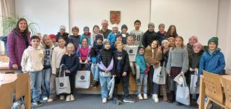 Schon am Eingang wurden die beiden Klassen von Bürgermeister Wimmer herzlich empfangen.