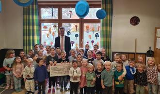 Große Freude im Kindergarten Teuschnitz: Die Sparkasse Kulmbach-Kronach hat eine Spende von 750 Euro überreicht. Das Geld stammt aus dem „Reinertrag des Sparkassen-PS-Sparen und Gewinnens“ und wird für neues Spielmaterial verwendet. Den symbolischen Spendenscheck überreichte Sparkassenleiter Uwe Pfadenhauer. Die 56 Kinder und das Team des Kindergarten St. Anna sagen herzlichen Dank dafür.