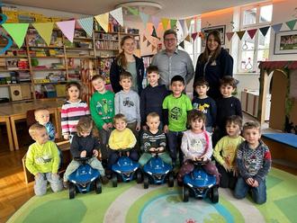 Das Wickieteam freute sich sehr über die neuen Bobbycars und Diana Vetter bedankte sich von ganzem Herzen bei Holger Heinlein. Das Kindergartenteam kann den Umzug in den neu sanierten Kindergarten kaum erwarten, dann können die Bobbycars auch auf dem neu angelegten Spielplatz ausgefahren werden.