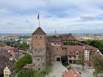 Dort angekommen stürmten die Schüler die Kaiserburg, das Wahrzeichen Nürnbergs. Die Wartezeit bis zur Führung überbrückten alle mit dem Besteigen des Sinwellturms, der einen herrlichen Rundumblick über die Stadt Nürnberg und Umgebung ermöglichte.