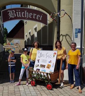 Das Foto zeigt die Delegation des Bücherei-Teams bei der Teilnahme am Festumzug. Vielen Dank an Eliah W. für das Tragen unseres Täfelchens.