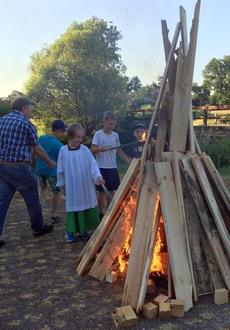 Auch in diesem Jahr wieder hatte der KAB Ortsverband Ornbau Mitglieder, Freunde und Bekannte zum traditionellen Johannisfeuer in Obermühl eingeladen. Nach einem sehr interessanten und abenteuerlichen Bibellauf kamen viele Kinder und Erwachsene am Spielplatz in Obermühl zusammen, um bei herrlichem, aber auch etwas heißem Wetter Gemeinschaft zu erleben. Bei der Heiligen Messe erinnerte Stadtpfarrer Dr. Wolfgang Börschlein an die Bedeutung des Heiligen Johannes und des Feuers für den Menschen. Anschließend wurde zum Johannisfeuer übergeleitet. Unter tatkräftiger Unterstützung vieler Kinder wurde das Holz mit Hilfe von Fackeln entzündet. Bald darauf schon brannte das Holz, erhellte den Platz und wärmte zudem alle Mitfeiernden. Auch für das leibliche Wohl war bestens gesorgt. Die Anwesenden ließen sich warme Wiener zusammen mit einem Getränk schmecken. Bedanken möchte sich die Vorstandschaft mit einem herzlichen „Vergelt’s Gott“ noch einmal bei allen Teilnehmern, Helferinnen und Helfern dieses Abends, besonders bei den Familien Bachler, Göttler und Sommer für die Ünterstützung und der Familie Albert Bösendörfer für die großzügige Holzspende.
