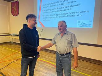 Der Feldgeschworene für die Gemarkung Ornbau, Herr Roland Göttler ist am 21.11.2022 verstorben. Zur Nachfolge wurde Herr Josef Seibold von den verbliebenen Siebenerkollegen gewählt. Herr Seibold wurde gem. § 5 der Feldgeschworenenordnung durch Nachsprechen der Eidesformel verpflichtet.