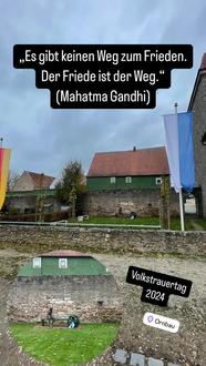 Ich bedanke mich bei allen Mitwirkenden, die dazu beigetragen haben, der Gedenkveranstaltung einen würdigen Rahmen zu verleihen. Stadtpfarrer Dr. Wolfgang Börschlein für die geistlichen Worte, der Pfarrgemeinde, dem Musikverein und dem Gesangverein für die musikalische Umrahmung, den Fahnenabordnungen der örtlichen Vereine und ganz besonders unserer Soldaten- und Reservistenkameradschaft, die dieser wichtigen Gedenkveranstaltung am Volkstrauertag einen würdigen Rahmen verleihen. "Es gibt keinen Weg zum Frieden. Der Friede ist der Weg." (Mahatma Gandhi)