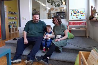 Familie Frühling war die 42. Neuanmeldung in 2024. Wir überreichten der Familie als Geschenk einen Sammelband von Astrid Lindgrens „Michel aus Lönneberga“.