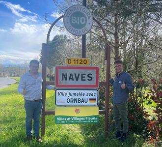Die Gemeinde Naves aus Frankreich hat ebenfalls ein Schild aufgestellt, auf dem auf unsere gemeinsame Partnerschaft hingewiesen wird. Dabei wurde auch darauf geachtet, dass nicht "Dorf", sondern "Stadt" auf dem Schild steht.