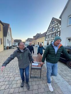 Zwei neue Sitzgelegenheiten wurden in der Altstadt geschaffen. Die Bänke wurden von den Mitgliedern des Bau- und Umweltausschusses auf ihren beschlossenen Platz vor dem Rathaus und im Kreuzungsbereich Altstadt/Klosterstraße Richtung Kirchplatz getragen.