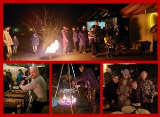 Einen etwas anderen Jahresabschluss gab es diesmal am 16. Dezember: anstatt der üblichen Weihnachtsfeier organisierte die Abteilung diesmal einen Weihnachtsmarkt! Nach Absprache mit der Abteilung Stockschießen wurden ein Bratwurststand, ein Stand mit Schupfnudeln und ein Crépes-Stand aufgebaut, Kinderpunsch- und Glühwein aufgeheizt, Lagerfeuer entzündet und Plätzchen, Lebkuchen und Stollen auf den Tischen verteilt. Überraschend kam der Nikolaus in Begleitung des Krampus vorbei und hatte Schokonikoläuse und mit dem Abteilungslogo bedruckte Trinkflaschen für alle im Gepäck. Ein kleiner Rückblick des Jahres 2024 sowie eine Karaoke-Einlage zu Ehren der Trainer auf das Lied „Hier kommt Alex“ von den Ärzten ganz nach dem Motto „Hier kommen unsere Trainer“ rundeten den Abend ab.