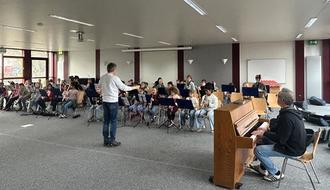 Die beiden Bläserklassen der dritten und vierten Jahrgangsstufe gaben in der letzten Tuttiprobe vor den Weihnachtsferien eine kleine Kostprobe ihres Könnens. Das Zusammenspiel gelang einwandfrei und die bekannten Weihnachtlieder wurden von allen mit viel Freude vorgetragen.