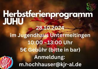 Montag 28.10. 10:00-13:00 Uhr im Jugendhaus Untermeitingen (Schulstraße 2, 86836 Untermeitingen) Kosten 5€.