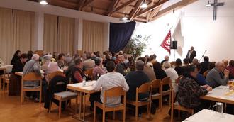 Der 1. Vorsitzende Wolfgang Ebner begrüßt die Gäste im katholischen Pfarrheim Untermeitingen