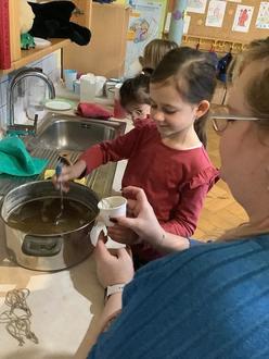 | - | Masse in einen Becher und hart werden lassen und aufhängen |