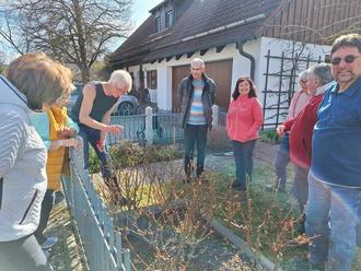 Bei strahlendem Sonnenschein fand im Garten von Wolfgang Pavel ein praxisnaher Rosenschneidkurs mit Herrn Frey vom Landratsamt statt. Zehn Teilnehmer erhielten wertvolle Tipps rund um den richtigen Rosenschnitt.