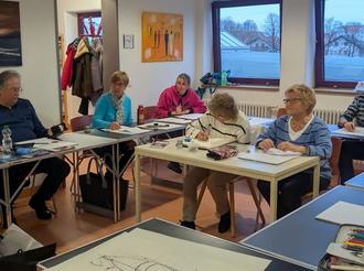 Letzten Monat fand in den Räumen des Kunstkreises zum ersten Mal ein Workshop mit einem externen Dozenten statt. Bisher tauschten die KKL-Mitglieder beim gemeinsamen Malen Erfahrungen aus und halfen sich so gegenseitig.
