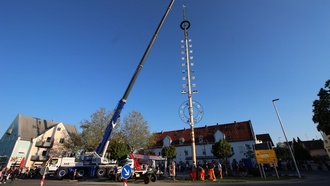 Die Aufstellung des Maibaums verlief dank der erfahrenen Zusammenarbeit aller Helfer reibungslos: Mitarbeiter des Bauhofs und ein Autokranführer sorgten dafür, dass der Baum sicher in die vorgesehene Bodenhalterung eingesetzt wurde. Ein Blick zurück zeigt: 1977 musste der erste Maibaum noch mit reiner Muskelkraft und sogenannten "Schwalben" errichtet werden. Ob es zuvor bereits Aufstellungen gab, lässt sich heute nicht mehr mit Sicherheit feststellen. Der damalige Organisator war Hans Bauer, der im Rahmen der Dorfgemeinschaft – in der alle Vereine eingebunden waren – tätig war. Hans Bauer war von 1982 bis 1994 Vorsitzender der Soldaten- und Veteranenkameradschaft. Ab 1978 übernahm der damalige 2. Bürgermeister Xaver Schmid für viele Jahre die Organisation der Aufstellung.