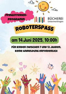 Während der Pfingstferien bleibt die Bücherei wie gewohnt geöffnet. Besonders hinweisen möchten wir auf den Roboter-Spaß-Vormittag am 14. Juni, der kleinen Technikfans spannende Einblicke ermöglicht.