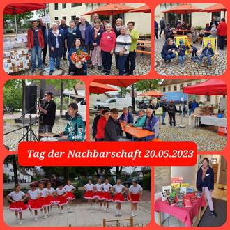 Den Tag der Nachbarschaft feierten wir in Untermeitigen zusammen mit dem 30-jährigen Jubiläum des Wochenmarktes am 20.Mai 2023 auf dem Rathausplatz von Untermeitingen.