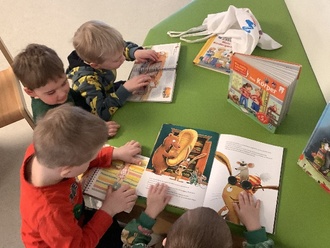 Jeden Donnerstag findet in der Kita am Heuweg der Büchertausch mit unseren Kindergartenkindern statt. Mit der Unterstützung freiwilliger Eltern wird wöchentlich eine große Auswahl an Büchern im Foyer präsentiert und der Vormittag genutzt, um intensiv darin zu blättern oder daraus vorzulesen. Jedes Kind hat hierbei die Möglichkeit, sich ein Buch auszusuchen und dieses für eine Woche mit nach Hause zu nehmen. Für den Transport wurde zu Beginn der Kindergartenzeit von jedem Kind eine eigene Büchertasche gestaltet. Das Angebot des Büchertauschs ermöglicht einen wertvollen Beitrag zur Literacy-Erziehung. Er trägt dazu bei, bei unseren Kindern die Lesefreude zu wecken und die Vielfalt von Büchern und Geschichten zu entdecken.