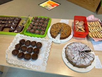 Im letzten Monat hat der Kuchenverkauf, der durch den Elternbeirat organisiert wurde, stattgefunden. Helfende Eltern spendierten zum Tag des Verkaufs Kuchen, Muffins und anderes Gebäck. Zu den Abholzeiten konnten die Eltern und Kinder gegen eine Spende die gebackenen Sachen mit nach Hause nehmen. Die Einnahmen kommen den Kindern der Kita am Heuweg zu Gute.