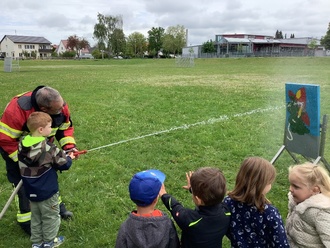 Die Feuerwehr hat unsere Kindertagesstätte besucht. Dabei konnten die Kinder viel lernen. Die Feuerwehrleute hatten für uns viele wichtige Informationen dabei. Sie erklärten den Kindern Verhaltensweisen für den Ernstfall und jeder konnte auch einmal das Wasserspritzen ausprobieren. Ein weiterer Höhepunkt war das Feuerwehrauto. Alle konnten sich das Fahrzeug genau anschauen. Vielen Dank an die Feuerwehrleute, die sich extra für uns Zeit genommen haben.